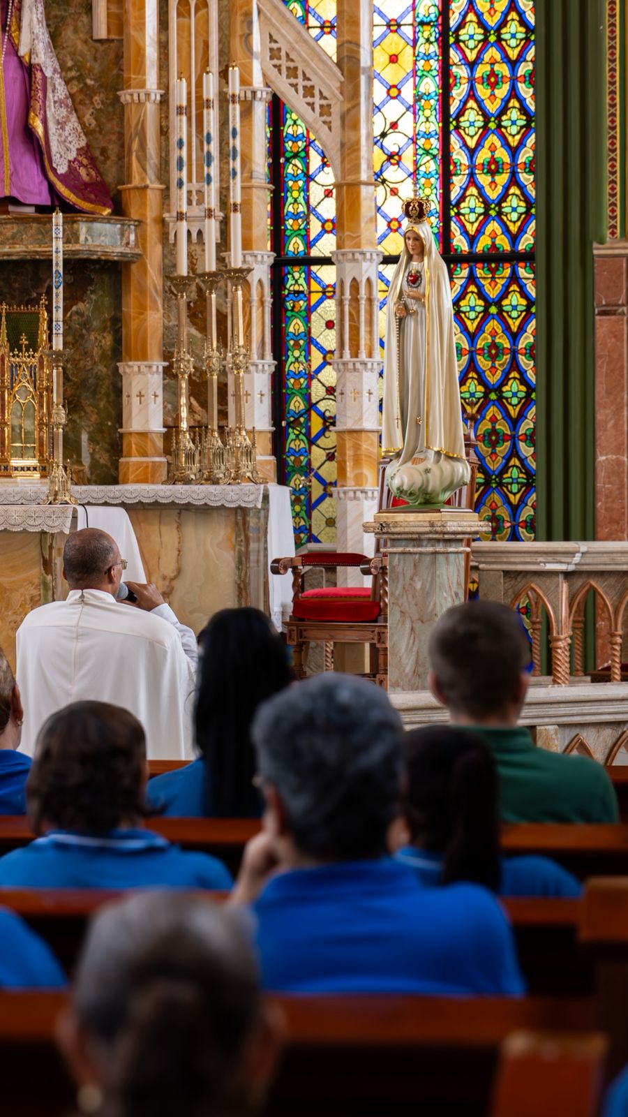La celebración fue presidida por el Padre Lucas García, EP, y contó con la participación de aproximadamente 600 personas, quienes vivieron con fervor este acto de entrega espiritual a la Virgen María, fortaleciendo la fe y la vida comunitaria.