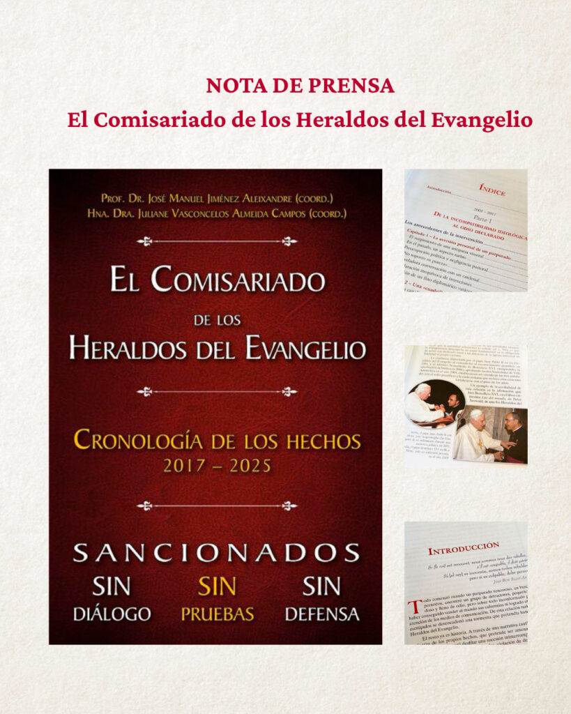 Sobre el libro: El Comisariado de Los Heraldos del Evangelio, crónica de los hechos 2017- 2025. Sancionados sin diálogo, sin pruebas, sin defensa.